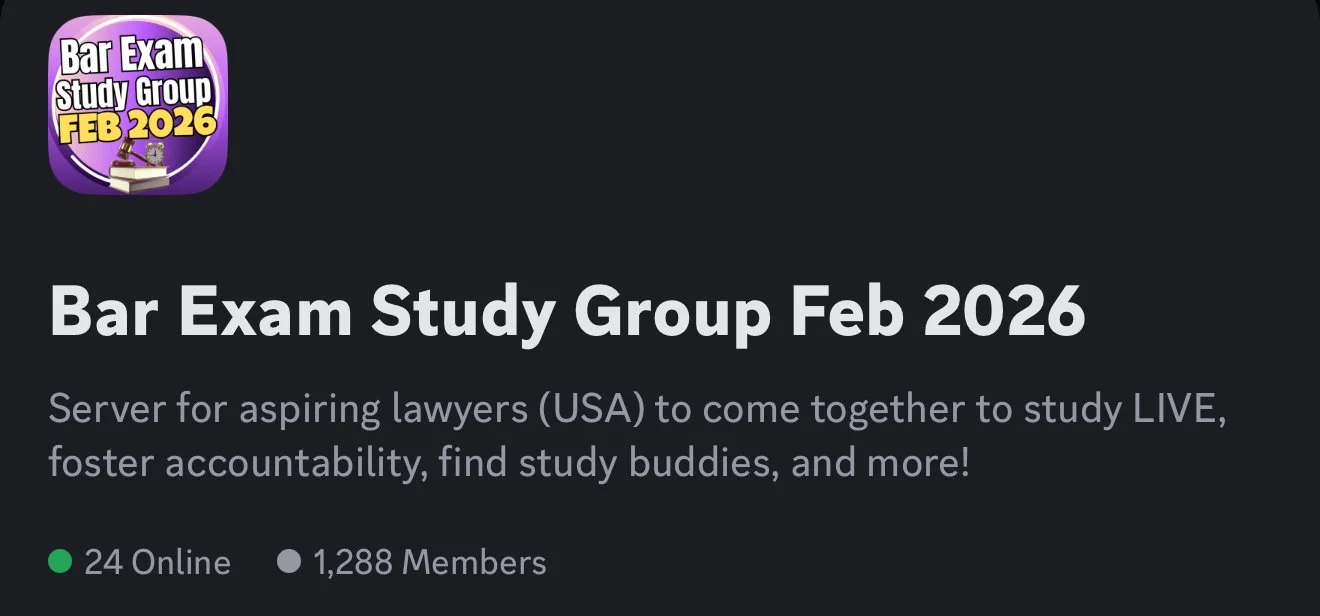 Plus, we proudly endorse another fantastic server dedicated to assisting individuals with their Bar Exam queries. With our active participation and a plethora of helpful members, you'll find valuable support and guidance. Come be a part of the action by clicking on the image below!